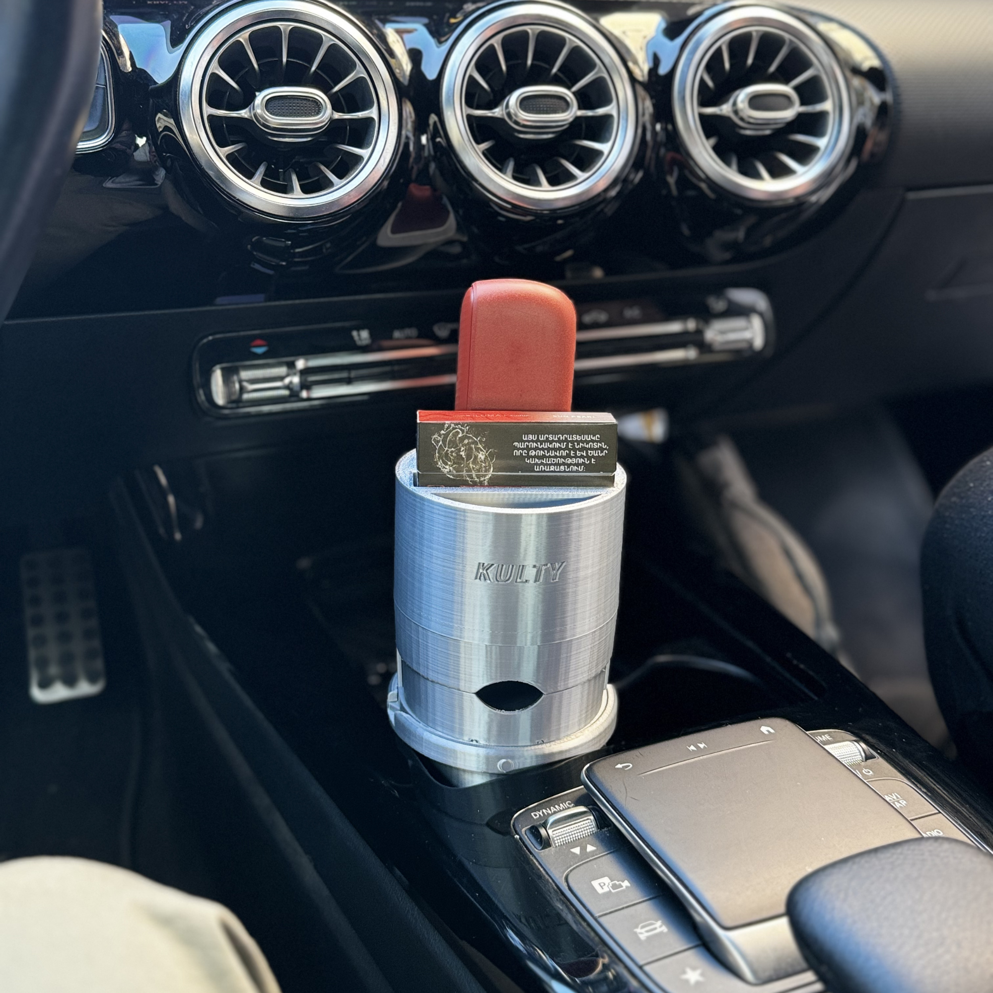 With its elegant design that complements your car, this ashtray offers easy use thanks to its lidded structure.